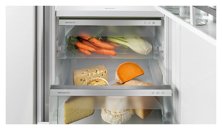 Телескопические направляющие SoftTelescopic зоны BioFresh позволяют открывать контейнеры очень легко, а закрываются они мягко и самостоятельно