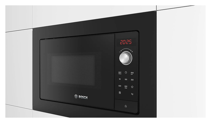 Встраиваемая микроволновая печь Bosch BFL623MC3 серии 2 предназначена для приготовления пищи, подогрева готовых блюд и ингредиентов, а также размораживания полуфабрикатов в частных домах, квартирах, отелях и офисах. Модель оснащена электронным управлением, поворотным переключателем Rotary Control, кнопкой старт/стоп, LED дисплеем, часами и таймером. Функция AutoPilot самостоятельно регулирует температуру, время приготовления и режимы нагрева без необходимости следить за процессом. Внутренняя поверхность покрыта эмалью. В комплект поставки входит стеклянное поворотное блюдо. Особенности: