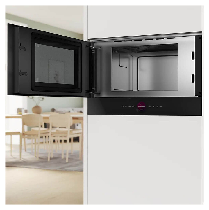 Встраиваемая микроволновая печь Bosch BFL7221B1 серии 8 предназначена для приготовления пищи, подогрева готовых блюд и ингредиентов, а также размораживания полуфабрикатов в частных домах, квартирах, отелях и офисах. Модель оснащена электронным управлением, поворотным переключателем Control Ring, сенсорной панелью TouchControl, кнопкой старт/стоп, интерактивным TFT дисплеем, часами и таймером. Функция AutoPilot самостоятельно регулирует температуру, время приготовления и режимы нагрева без необходимости следить за процессом. Внутренняя поверхность выполнена из нержавеющей стали.