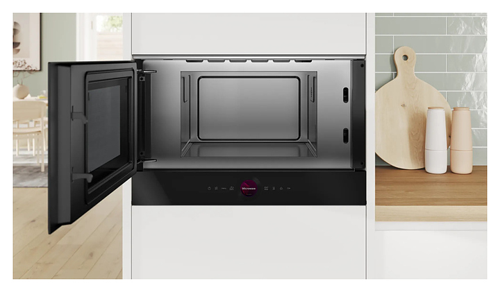 Встраиваемая микроволновая печь Bosch BFL9221B1 серии 8 предназначена для приготовления пищи, подогрева готовых блюд и ингредиентов, а также размораживания полуфабрикатов в частных домах, квартирах, отелях и офисах. Модель оснащена электронным управлением, поворотным переключателем Control Ring, сенсорной панелью TouchControl, кнопкой старт/стоп, интерактивным TFT дисплеем, часами и таймером. Функция AutoPilot самостоятельно регулирует температуру, время приготовления и режимы нагрева без необходимости следить за процессом. Внутренняя поверхность выполнена из нержавеющей стали.