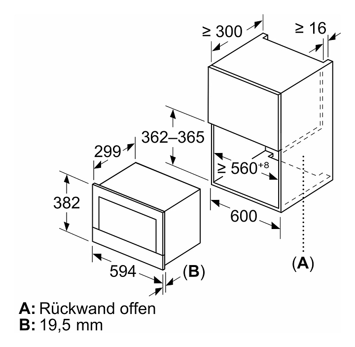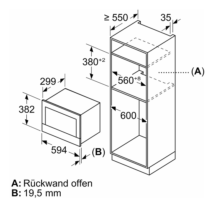 • Габариты ниши для встраивания: 380-382х560-568х550 мм