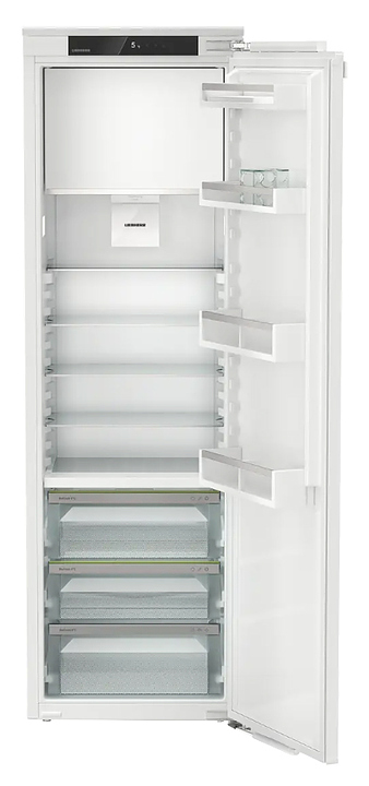 Встраиваемый холодильник Liebherr IRBd 5121 серии Plus предназначен для охлаждения и хранения пищевых продуктов и напитков в гостиничных комплексах, офисах, а также домашних условиях. Модель оснащена сенсорной панелью управления с монохромным ЖК-дисплеем с функцией блокировки от детей и встроенной морозильной камерой. Полки в камере выполнены из стекла, полки на двери - из белого пластика, сухая задняя стена - из пластика.