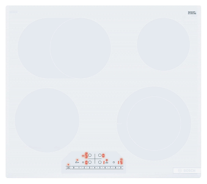 Электрическая варочная панель Bosch PKN652FP2E серии 6 предназначена для приготовления большого ассортимента блюд в наплитной посуде в домашних условиях. Модель оснащена 4 конфорками различной мощности, сенсорной панелью управления DirectSelect, цветным TFT дисплеем, таймером, 2-контурной и овальной конфорками. Нагревательные элементы Hi-light при температуре выше 50 °С начинают светиться красным, что является элементом безопасности. Функция ReStart сохраняет все установленные настройки варочной панели при неожиданном отключении прибора из-за возникших проблем. Рабочая поверхность выполнена из стеклокерамики. Особенности: