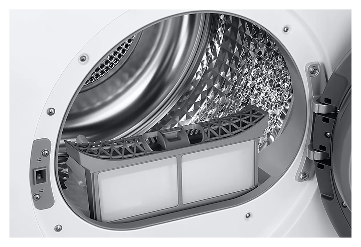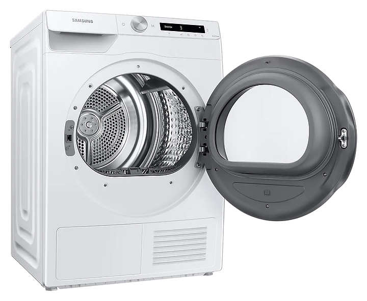 Сушильная машина Samsung DV5000T используется в квартирах и частных домах для сушки одежды, белья и тканей после стирки. Модель оснащена фронтальным люком, тепловым насосом, реверсивной дверью и интеллектуальной панелью Al. Подсветка полости барабана гарантирует комфортную загрузку и выгрузку. Система OptimalDry автоматически оптимизирует время и температуру цикла для идеального результата без пересушивания и повреждения одежды. Барабан Diamond выполнен из обработанной стали. Программы: