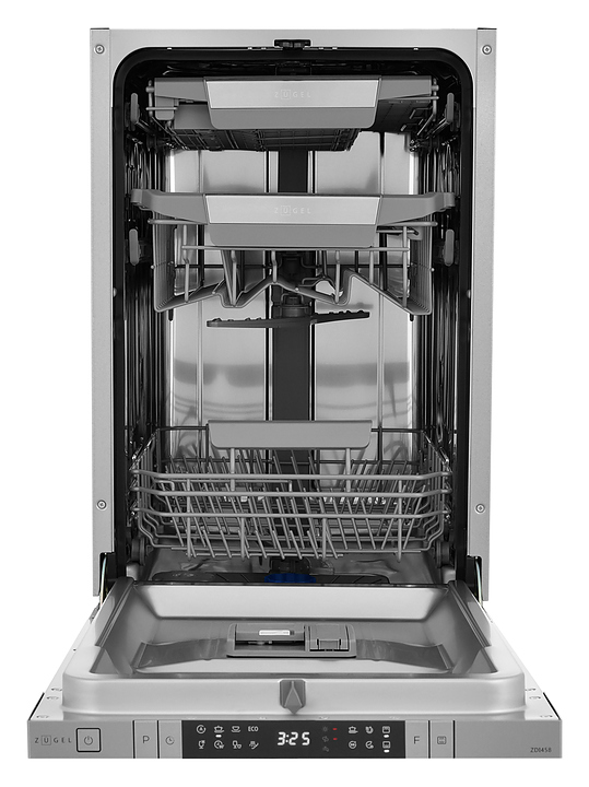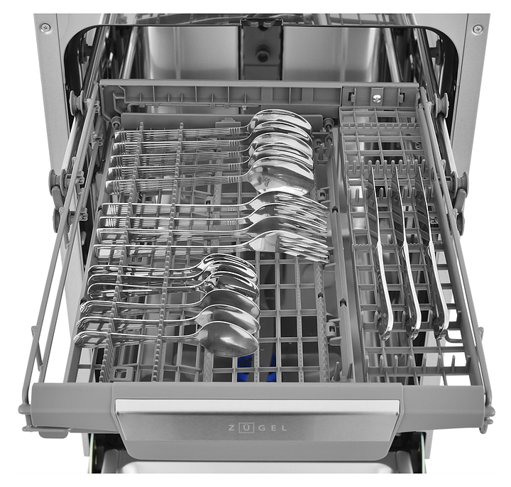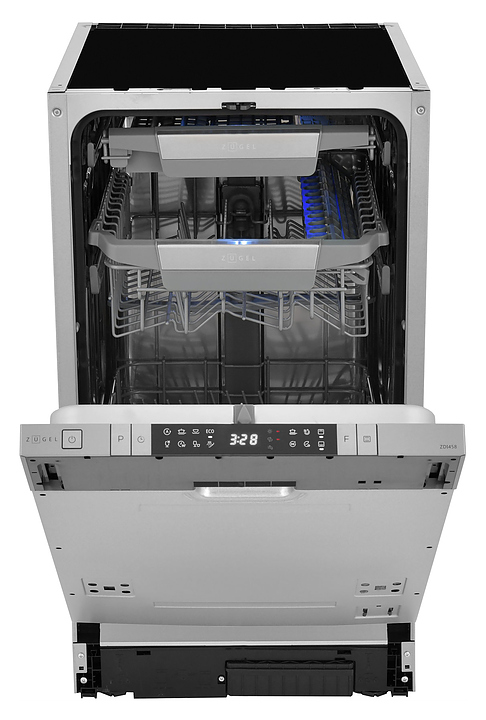 Посудомоечная машина Zugel ZDI458 предназначена для гигиенической обработки и последующей сушки различной посуды в домашних условиях. Модель оснащена электронным управлением и LED-дисплеем. Двигатель Smart Inverter снижает уровень шума, износа и энергопотребления. Индикация луч на полу помогает определить статус цикла мойки без открытия дверцы. Встроенная LED-подсветка облегчает загрузку и разгрузку посудомоечной машины. Фильтр выполнен из стали. Особенности: