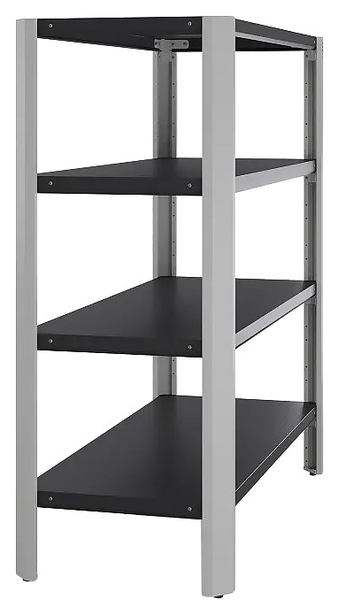 Стеллаж Kobor Expert MR4-90/50 предназначен для хранения инструментов, инвентаря, комплектующих, расходных материалов, штучных изделий или тарированных мелких грузов в производственных, складских и подсобных помещениях предприятий различных отраслей, мастерских и гаражах, а также для хранения документации в офисах и архивах. Модель оснащена 4 сплошными полками. Полки выполнены из стали с покрытием порошковой краской черного цвета (RAL 9005) с текстурой муар и усилены подштамповками, каркасные стойки – из стального профиля с порошковой краской светло-серого оттенка (RAL 7035) с текстурой муар. Особенности: