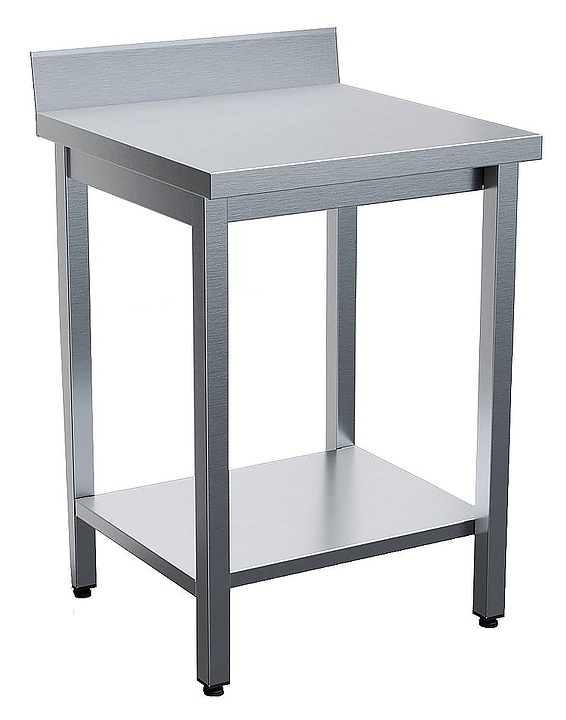 Стол Rada СТПУЧ-6/7-С предназначен для обработки продуктов питания, раскатки теста и хранения кухонной техники на предприятиях общественного питания и пищевой промышленности. Модель оснащена регулируемыми по высоте ножками, съемным бортом и сплошной полкой. Каркас выполнен из уголка нержавеющей стали AISI 430, столешница и полка из нержавеющей стали AISI 430 толщиной 0,8 мм, столешница усилена подложкой из фанеры толщиной 16 мм. Особенности: