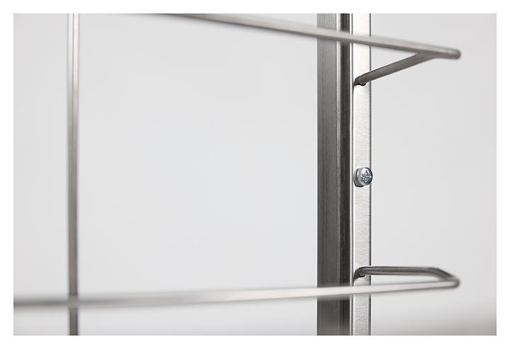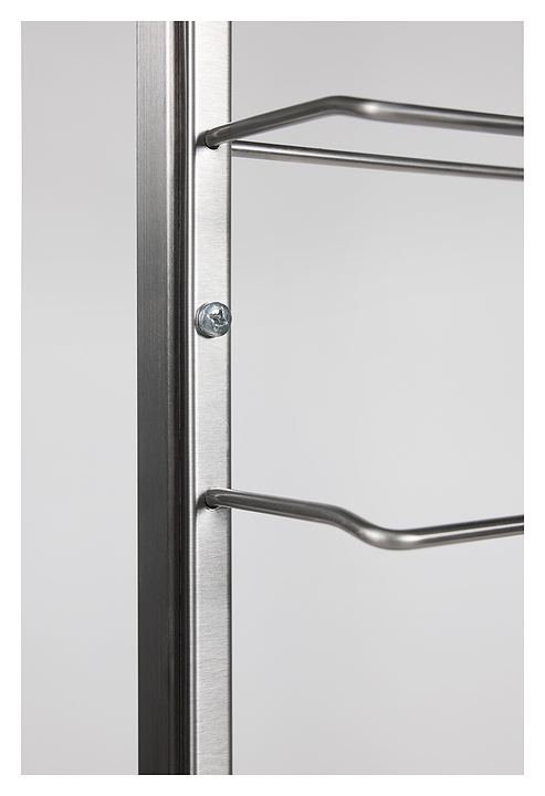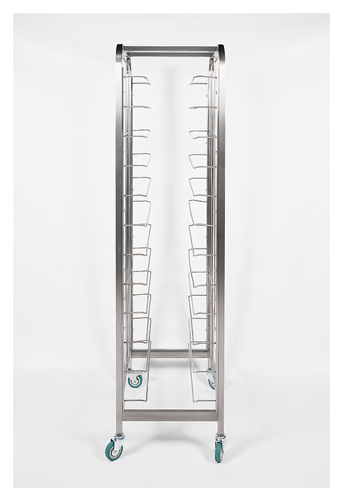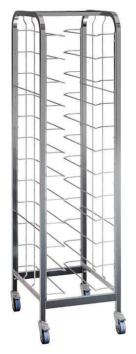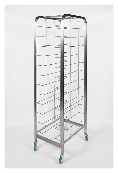 Тележка-шпилька Restoinox ТШРППР-12/360/540 предназначена для хранения и транспортировки подносов и противней на предприятиях общественного питания и торговли. Модель оснащена 12 парами направляющих под подносы, 4 колесами, 2 из которых со стопорами. Разборный каркас выполнен из квадратной трубы 25х25 мм нержавеющей стали Aisi 430, направляющие - из прутка из нержавеющей стали Aisi 304 диаметром 6 мм. Особенности:
