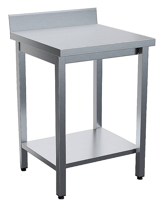 Стол Rada СТППЧ-6/7-С предназначен для обработки продуктов питания, раскатки теста и хранения кухонной техники на предприятиях общественного питания и пищевой промышленности. Модель оснащена регулируемыми по высоте ножками, съемным бортом и сплошной полкой. Каркас выполнен из профильной трубы квадратного сечения нержавеющей стали AISI 430, столешница и полка из нержавеющей стали AISI 430 толщиной 0,8 мм, столешница усилена подложкой из фанеры толщиной 16 мм. Особенности: