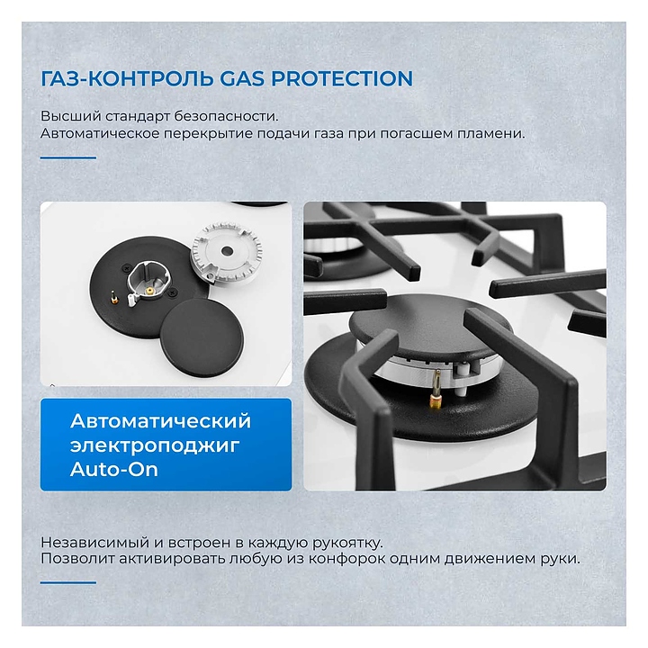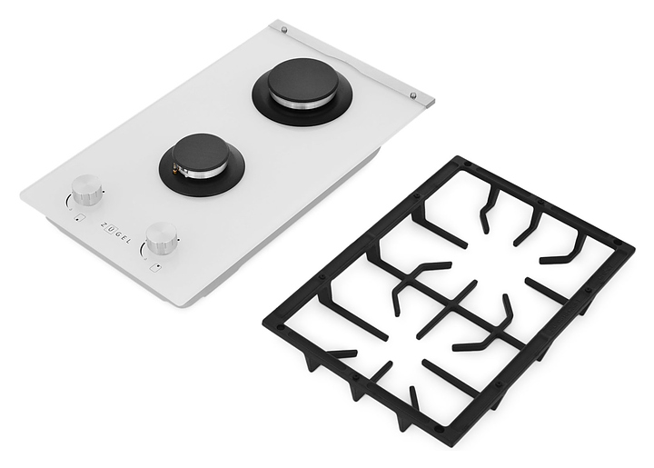 Варочная панель Zugel ZGH291W предназначена для приготовления большого ассортимента блюд в наплитной посуде в домашних условиях. Модель оснащена механическим управлением, 2 конфорками разной мощности, автоматическим электроподжигом Auto-On и рукоятками Steel Design. Газ-контроль Gas Protection автоматически перекрывает подачу газа при погасшем пламени. Рабочая поверхность выполнена из закаленного стекла, решетки - из чугуна, рукоятки - из бакелита. В комплект поставки входят шнур с вилкой, форсунки для конверсии газа, уплотнитель и монтажный комплект. Особенности: