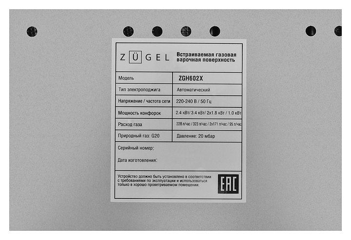 Панель варочная Zugel ZGH602X