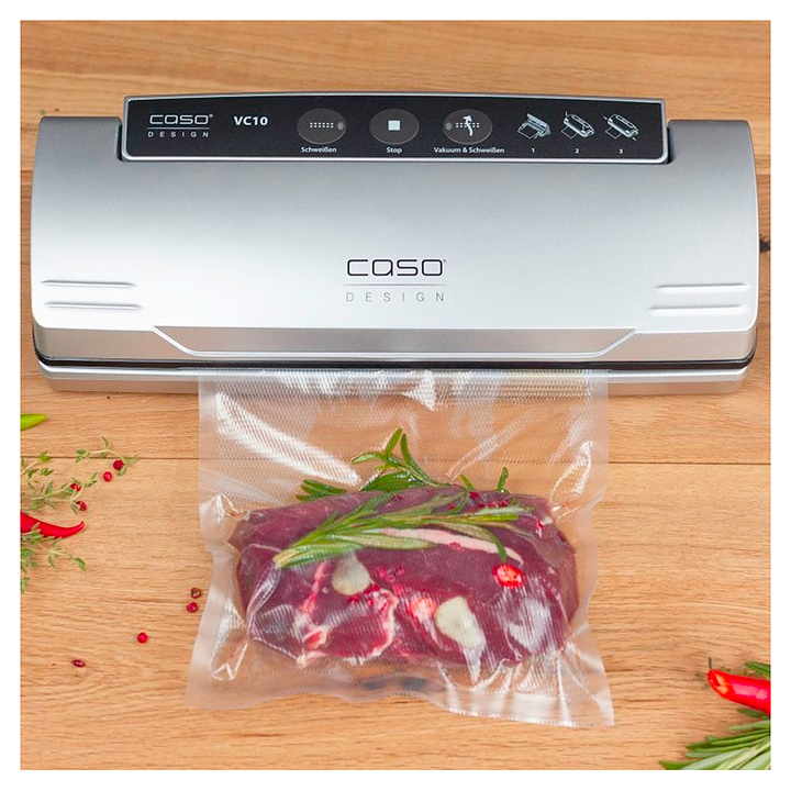 Вакуумный упаковщик CASO VC 10 PlusEdition используется в частных домах, квартирах и отелях для упаковки в вакуум мяса, рыбы, овощей, фруктов и домашних заготовок в пакетах или контейнерах для увеличения срока хранения. Модель оснащена электронным контролем температуры запаивания. Корпус выполнен из пластика. В комплект поставки входят 25 пакетов 16x23 см, 25 пакетов 20х30 см, 4 листа со стикерами и 1 вакуумный шланг для контейнеров. Особенности: