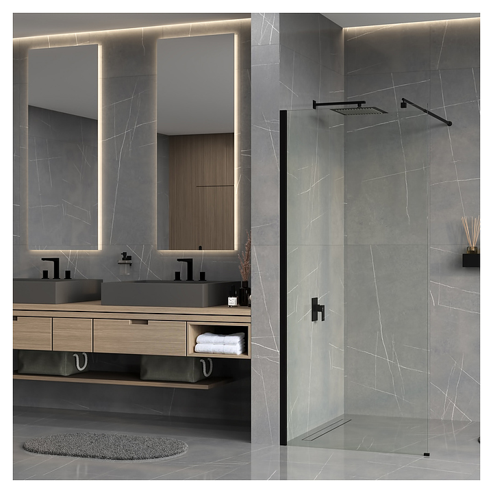 Душевое ограждение Wasserkraft Rur 30W46MB предназначено для использования в ванных комнатах. Модель оснащена настенным профилем, неподвижным стеклом и телескопическим фиксатором. Ограждение выполнено из закаленного прозрачного стекла, профиль из анодированного алюминия. Особенности:
