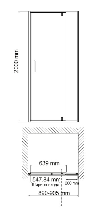 Дверь душевая Wasserkraft Spree 14P04 900х2000 мм, никель