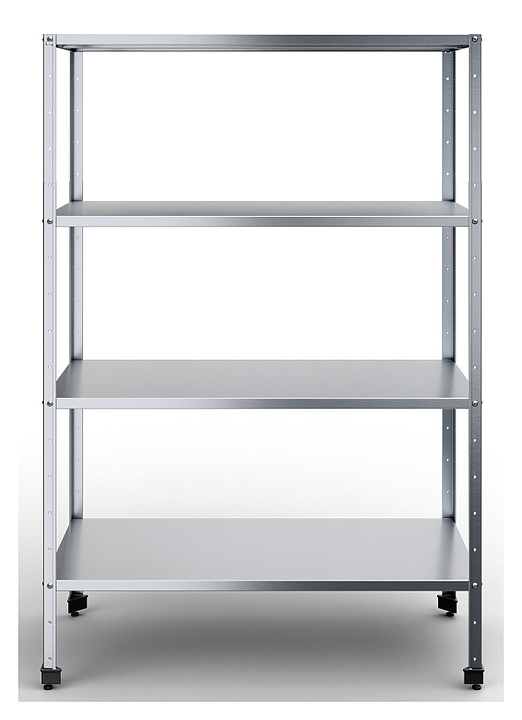 Кухонный стеллаж Rada СКСПЧ-10/4/0,4/0,2/18-4П предназначен для хранения посуды, инвентаря и сухих продуктов на предприятиях общественного питания и торговли. Разборный каркас выполнен из тубы 40x20 мм нержавеющей стали AISI 430, полки - из нержавеющей стали AISI 430. Особенности: