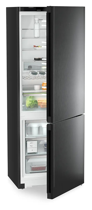 Холодильник Liebherr CNbdd 7723 серии Plus предназначен для охлаждения, замораживания, кратковременного и длительного хранения пищевых продуктов и напитков в гостиничных комплексах, офисах, а также домашних условиях. Модель оснащена сенсорной панелью управления с функцией блокировки от детей и монохромным ЖК-дисплеем и вертикальной, сплошной, эргономичной утопленной ручкой. Боковые стенки и дверь выполнены из нержавеющей стали черного цвета, устойчивой к появлению царапин и отпечатков пальцев, полки холодильной камеры - из стекла с декоративными планками с покрытием под нержавеющую сталь, полки морозильной камеры - из стекла, полки на дверце - из стекла с планкой из нержавеющей стали, сухая задняя стенка - из пластмассы.