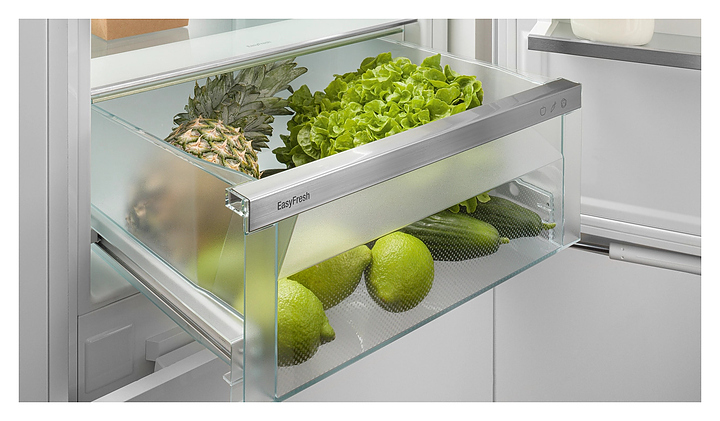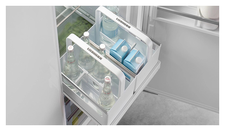 SoftSystem обеспечивает мягкое и безопасное закрывание двери, при этом стоящие в дверце бутылки не гремят и не качаются