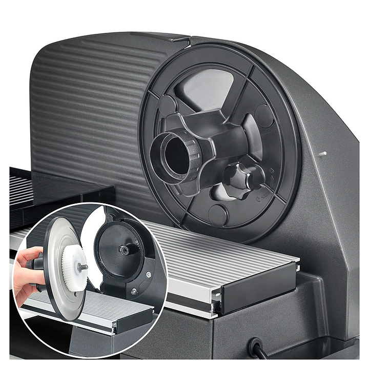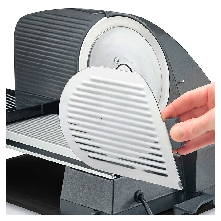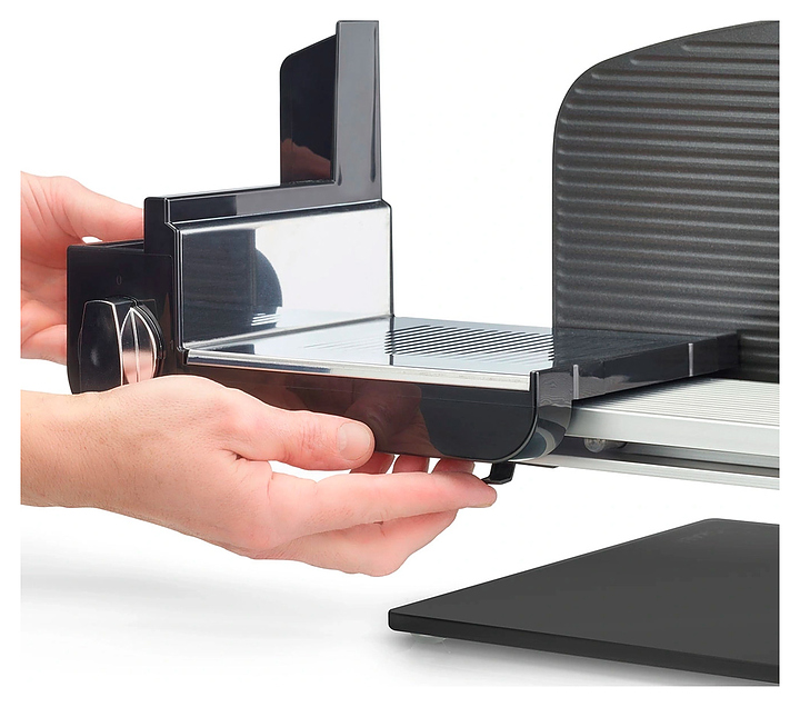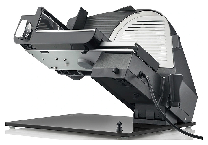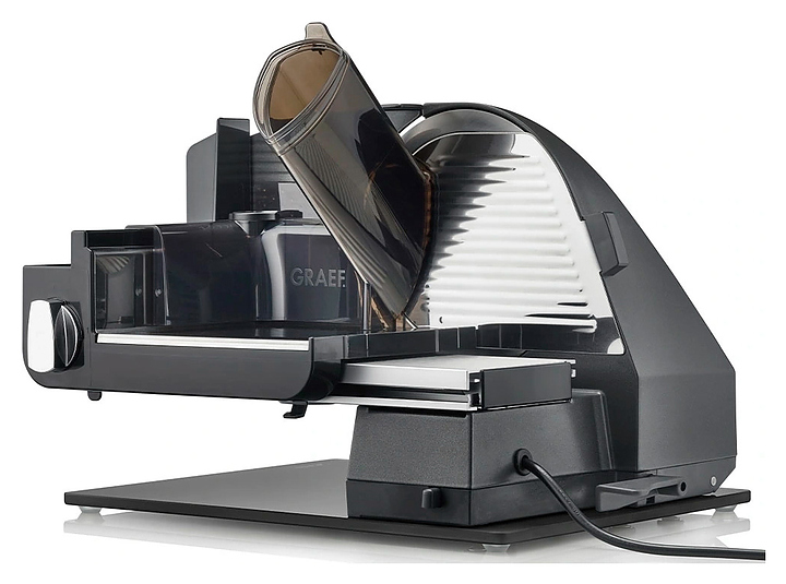 Ломтерезка Graef Master M95 предназначена для нарезки хлеба, мяса, сыра и других видов продуктов в квартирах, частных домах, отелях и офисах. Модель оснащена бесшумным конденсаторным двигателем и ножом. Быстродействующий переключатель для включения машины и нарезки одной рукой гарантирует комфортную эксплуатацию. Благодаря функции наклона слайсера на 30° нарезанные продукты можно удобно складывать на поддон. Цельнометаллическое лезвие выполнено из нержавеющей стали, закаленной с полой шлифовкой. Особенности: