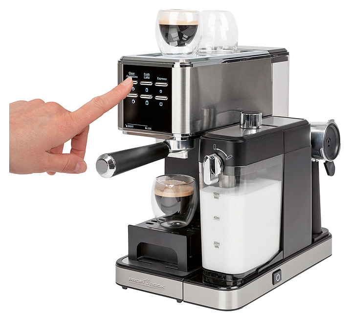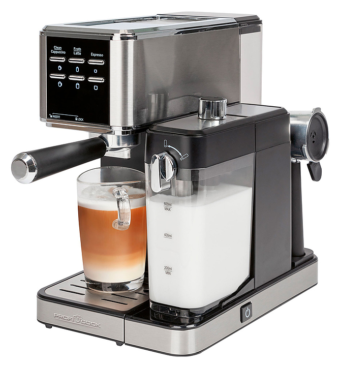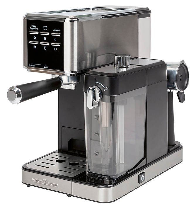 Кофемашина Profi Cook PC-ES-KA 1266 используется в кофейнях, барах, ресторанах и в домашних условиях для приготовления кофе и напитков на его основе. Модель оснащена съемным резервуаром для молока, кнопками управления с подсветкой и поворотной насадкой для молока. Ножки с присосками обеспечивают комфортное и безопасное применение. Корпус, платформа для подогрева чашек, решетка съемного поддона для капель, кнопки управления, вставки портафильтра, насадка для молока выполнены из нержавеющей стали, портафильтры - из алюминия. В комплект поставки входят портафильтр с 2 вставками (на 1 и 2 чашки), мерная ложка для кофе, тампер и адаптер для капсул, совместимых с Nespresso. Особенности: