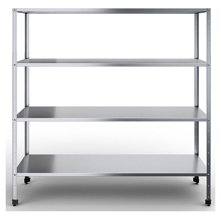 Кухонный стеллаж Rada СКСУЧ-17/6/18-4П предназначен для хранения посуды, инвентаря и сухих продуктов на предприятиях общественного питания и торговли. Разборный каркас выполнен из уголка 40x40 мм нержавеющей стали AISI 430, полки - из нержавеющей стали AISI 430. Особенности: