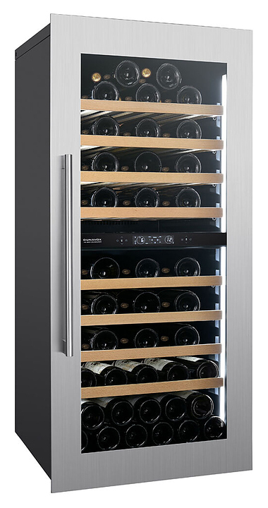 Винный шкаф Dunavox DVS-70.185DSS предназначен для демонстрации, хранения и создания оптимальных условий для сохранения вкусовых свойств вина в бутылках в частных домах или квартирах. Модель оснащена 2 температурными зонами, встроенной системой вентиляции, распашной дверью с ручкой, LCD-дисплеем и возможностью управлять настройками через мобильное приложение. Компрессорная система гарантирует стабильное охлаждение при колебаниях внешней температуры. Корпус выполнен из стали, дверь - из двойного стекла с УФ-фильтром, полки - из массива бука. Особенности: