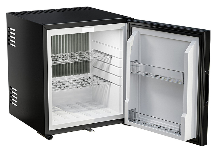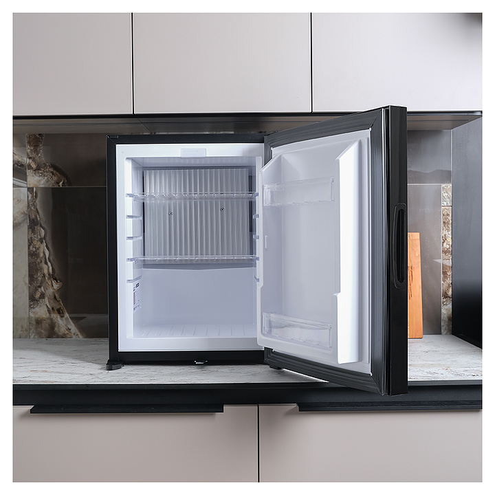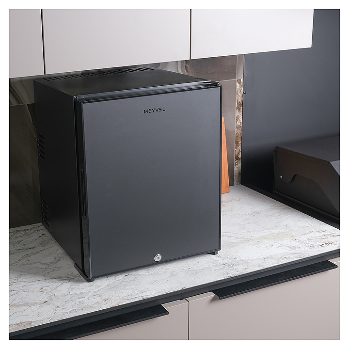 Минибар MEYVEL MMA-30B предназначен для охлаждения и кратковременного хранения скоропортящихся продуктов и напитков в отелях и гостевых домах. Модель оснащена глухой распашной дверью с утопленной ручкой, внутренним освещением, регулируемыми полками и замком. Абсорбционная система охлаждения гарантирует бесшумную работу, не создает вибраций и не издает неприятных звуков. Автоматическая разморозка избавляет от необходимости вручную удалять наледь, что упрощает уход за устройством. Полки выполнены из пластика, покрытие двери - из матового стекла. Особенности: