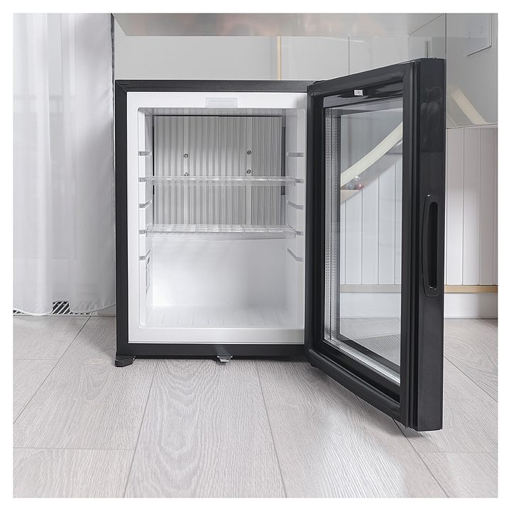 Минибар MEYVEL MMA-30BG предназначен для охлаждения, демонстрации и кратковременного хранения скоропортящихся продуктов и напитков в отелях и гостевых домах. Модель оснащена прозрачной распашной дверью с утопленной ручкой, внутренним освещением, регулируемыми полками и замком. Абсорбционная система охлаждения гарантирует бесшумную работу, не создает вибраций и не издает неприятных звуков. Автоматическая разморозка избавляет от необходимости вручную удалять наледь, что упрощает уход за устройством. Полки выполнены из пластика, дверь - из стекла. Особенности: