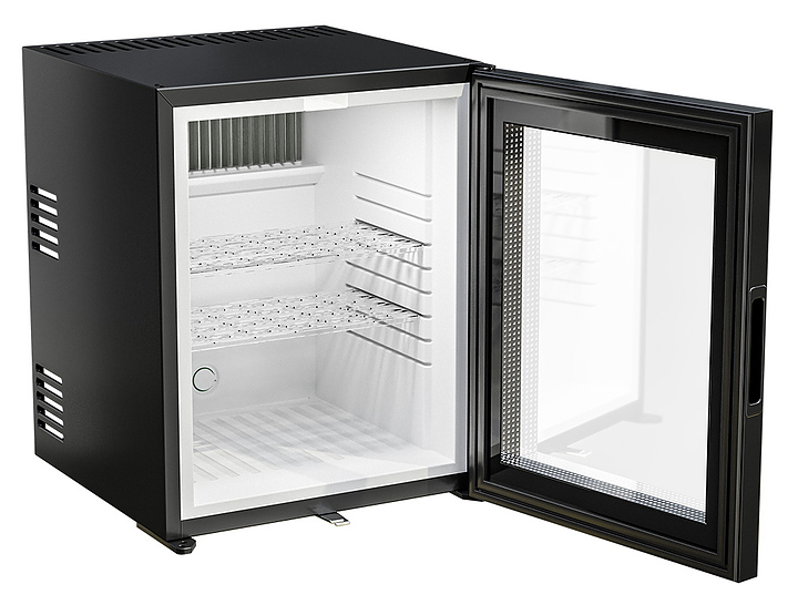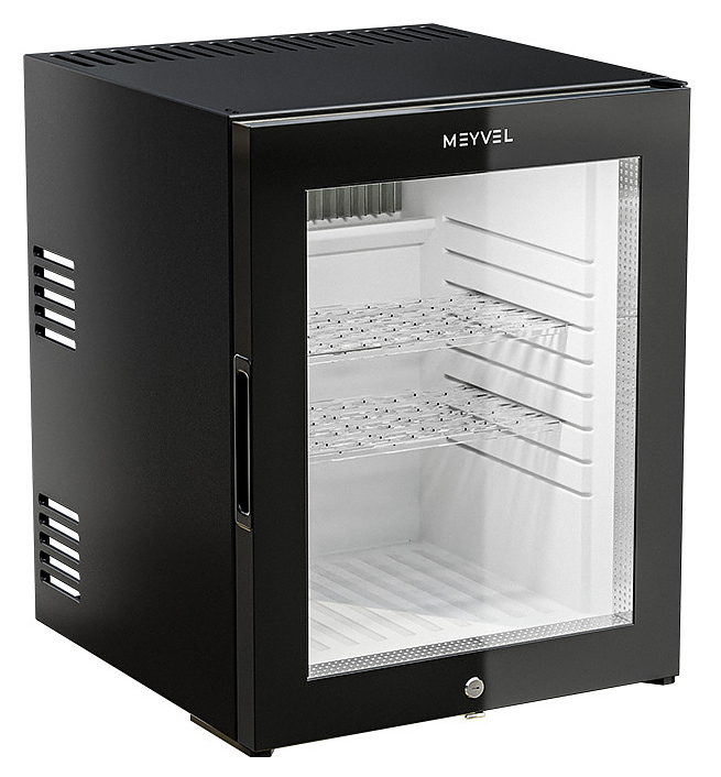 Минибар MEYVEL MMA-38BG предназначен для охлаждения, демонстрации и кратковременного хранения скоропортящихся продуктов и напитков в отелях и гостевых домах. Модель оснащена прозрачной распашной дверью с утопленной ручкой, внутренним освещением, регулируемыми полками и замком. Абсорбционная система охлаждения гарантирует бесшумную работу, не создает вибраций и не издает неприятных звуков. Автоматическая разморозка избавляет от необходимости вручную удалять наледь, что упрощает уход за устройством. Полки выполнены из пластика, дверь - из стекла. Особенности: