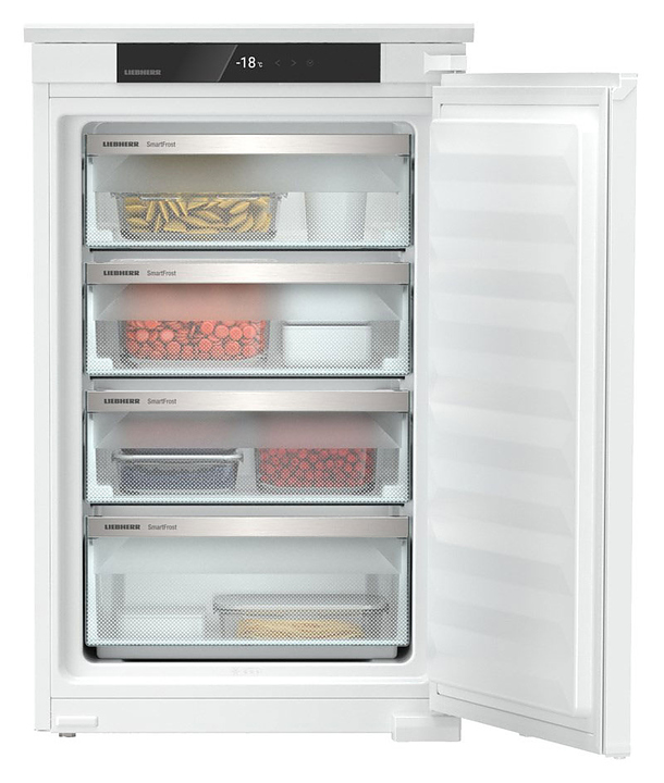 Встраиваемый морозильник Liebherr IFSd 3904 серии Pure предназначен для заморозки и длительного хранения продуктов и полуфабрикатов в частных домах, квартирах, отелях и офисах. Модель оснащена сенсорной панелью управления с монохромным ЖК-дисплеем с функцией блокировки от детей. Полки выполнены из стекла. Особенности: