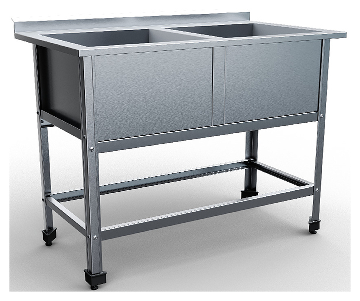 Моечная ванна Rada ВМСВПЧ-2-13,5/8,25/8,5 используется на производствах и предприятиях общественного питания. Ванны выполнены из нержавеющей стали AISI 430, каркас из уголка 40х40 мм нержавеющей стали AISI 430. Особенности: