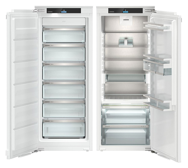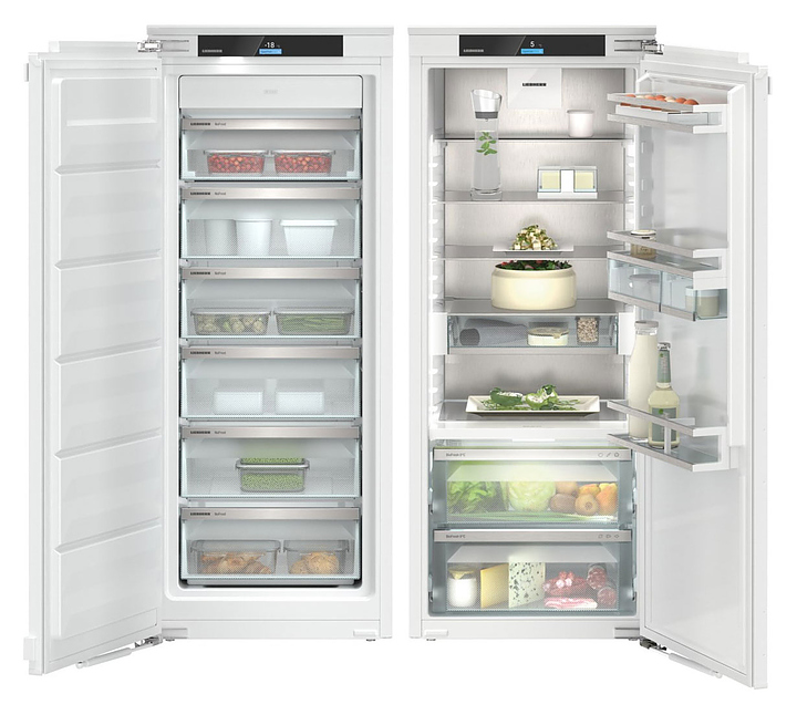 Встраиваемый холодильник Liebherr IXRF 4555 серии Prime предназначен для охлаждения, замораживания, кратковременного и длительного хранения пищевых продуктов и напитков в гостиничных комплексах, офисах, а также домашних условиях. Модель оснащена сенсорным и свайповым экраном с цветным 2,4" TFT-дисплем с функцией блокировки от детей. Сухая задняя стенка выполнена из нержавеющей стали SmartSteel, полки в холодильной камере - из стекла, полки на двери - из стекла с планкой из нержавеющей стали.