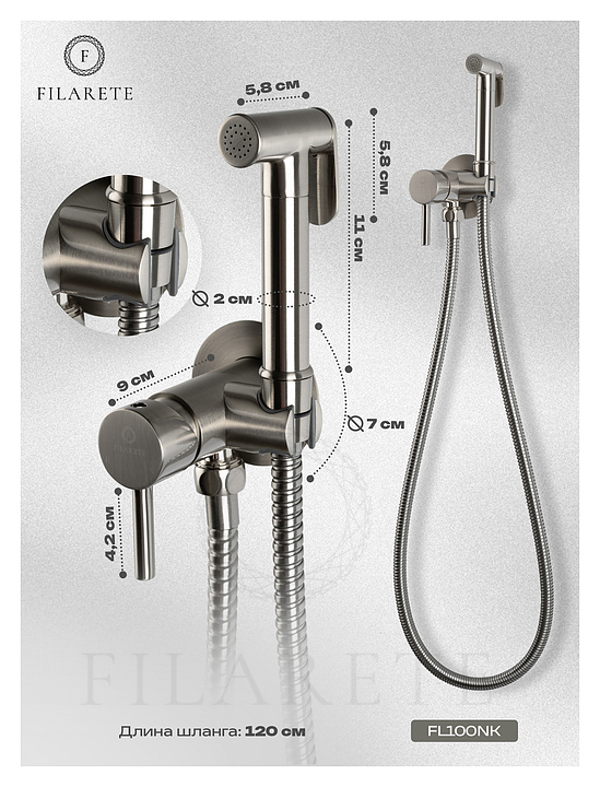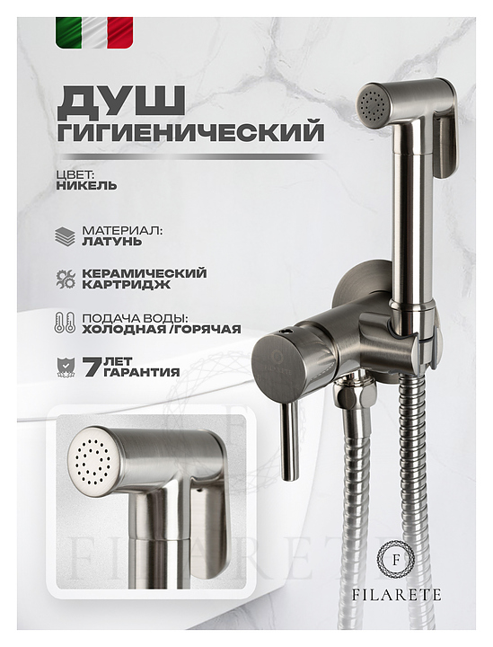 Душ гигиенический со смесителем FILARETE Roun FL100NK, никель