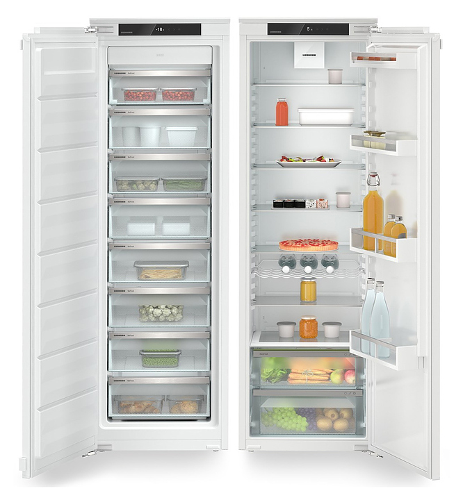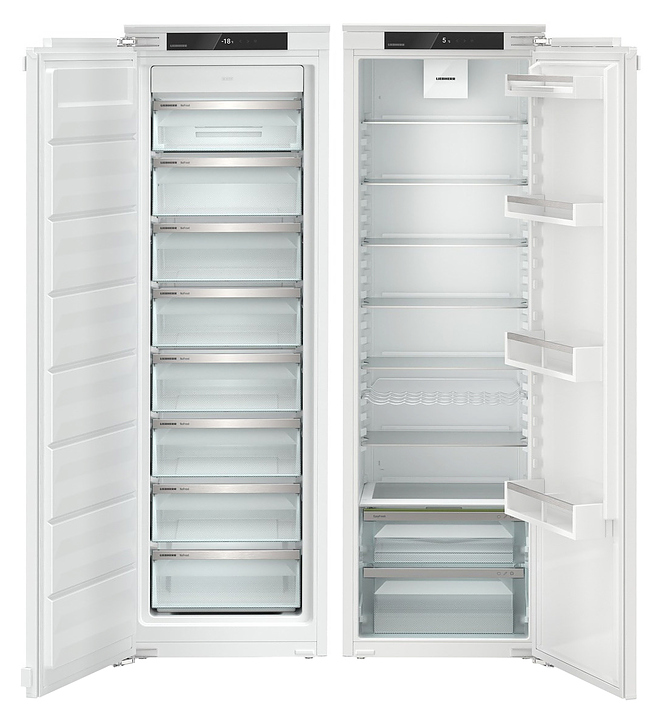 Встраиваемый холодильник Liebherr IXRF 5100 серии Pure предназначен для охлаждения, замораживания, кратковременного и длительного хранения пищевых продуктов и напитков в гостиничных комплексах, офисах, а также домашних условиях. Модель оснащена сенсорной панелью управления с монохромным ЖК-дисплеем с функцией блокировки от детей. Полки в холодильной камере выполнены из стекла, полки на дверце - из белого пластика, ящики в морозильной камере - из безопасного стекла.