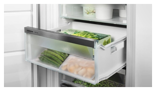 Система VarioSpace позволяет снять отдельные ящики морозильника, обеспечивая дополнительное пространство для хранения