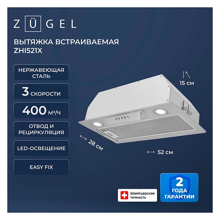 Кухонная вытяжка Zugel ZHI521X используется в домашних условиях для очистки воздуха от продуктов горения, копоти и запахов в процессе приготовления пищи путем принудительной вентиляции. Модель оснащена электронным управлением с кнопками. Светодиодные лампы гарантируют яркое и равномерное освещение рабочей зоны. Корпус выполнен из стали, жировой фильтр - из алюминия. В комплект поставки входит жироулавливающий фильтр. Особенности: