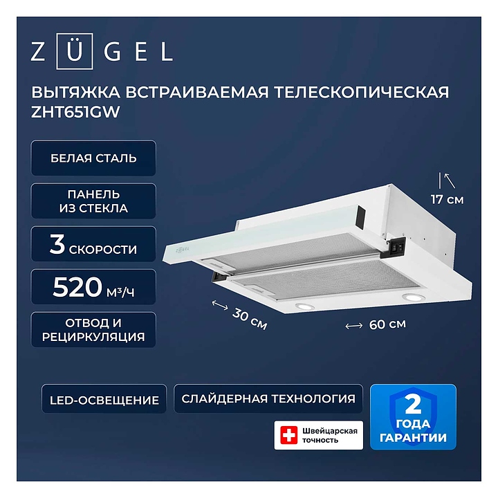 Вытяжка кухонная Zugel ZHT651GW