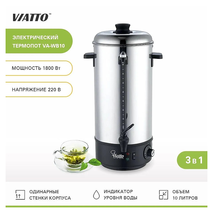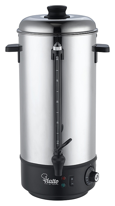 Электрокипятильник VIATTO MK-WB10 предназначен для приготовления кипятка для варки гарниров, овощей, сосисок, пельменей и других продуктов питания, а также для заваривания и приготовления горячих напитков, стерилизации кухонной и столовой посуды, столовых приборов на предприятиях общественного питания и торговли. Модель оснащена закрытым нагревательным элементом. Корпус выполнен из нержавеющей стали и пластика. Особенности: