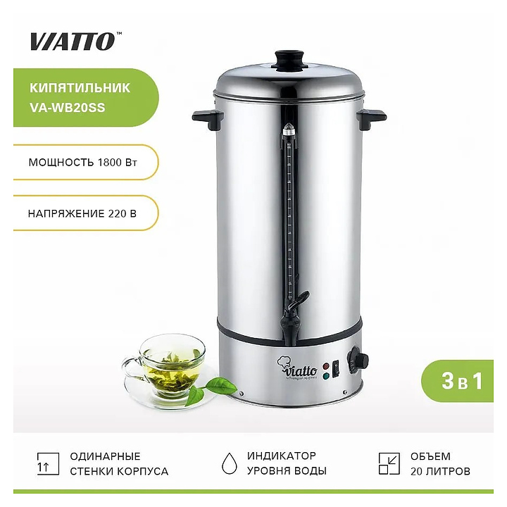 Электрокипятильник VIATTO MK-WB20SS предназначен для приготовления кипятка для варки гарниров, овощей, сосисок, пельменей и других продуктов питания, а также для заваривания и приготовления горячих напитков, стерилизации кухонной и столовой посуды, столовых приборов на предприятиях общественного питания и торговли. Модель оснащена закрытым нагревательным элементом. Корпус выполнен из нержавеющей стали. Особенности: