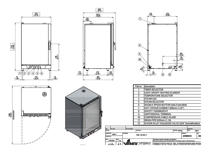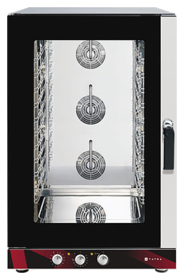 Пекарский пароконвектомат Tatra TBI 10 M.V предназначен для выпекания кондитерских и хлебобулочных изделий из свежего и замороженного теста с применением режимов сочетания конвекции и пара. Модель оснащена электромеханической панелью управления, инжекторным пароувлажнением, галогеновым освещением камеры, закругленными углами для легкой очистки, таймером и 3 реверсивными вентиляторами для равномерного приготовления. Двойное жаростойкое стекло сокращает теплопотери и защищает персонал от ожогов. Корпус и камера выполнены из нержавеющей стали. Гастроемкости и противни в комплект поставки не входят. Особенности: