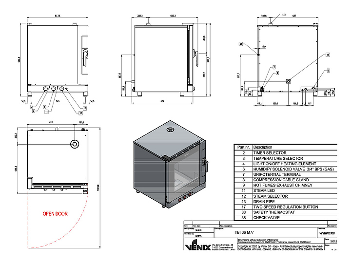 Пекарский пароконвектомат Tatra TBI 06 M.V предназначен для выпекания кондитерских и хлебобулочных изделий из свежего и замороженного теста с применением режимов сочетания конвекции и пара. Модель оснащена электромеханическим управлением, инжекторным пароувлажнением, галогеновым освещением камеры, закругленными углами для легкой очистки, таймером и 2 реверсивными вентиляторами для равномерного приготовления. Двойное жаростойкое стекло сокращает теплопотери и защищает персонал от ожогов. Корпус и камера выполнены из нержавеющей стали. Гастроемкости и противни в комплект поставки не входят. Особенности:
