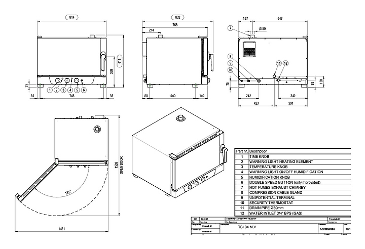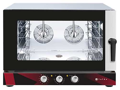 Пекарский пароконвектомат Tatra TBI 04 M.V предназначен для выпекания кондитерских и хлебобулочных изделий из свежего и замороженного теста с применением режимов сочетания конвекции и пара. Модель оснащена электромеханическим управлением, инжекторным пароувлажнением, галогеновым освещением камеры, закругленными углами для легкой очистки, таймером и 2 реверсивными вентиляторами для равномерного приготовления. Двойное жаростойкое стекло сокращает теплопотери и защищает персонал от ожогов. Корпус и камера выполнены из нержавеющей стали. Гастроемкости и противни в комплект поставки не входят. Особенности: