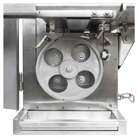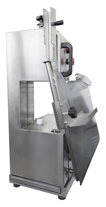 Ленточная пила Пищевый Технологии ПЛРМ1650 предназначена для резки мяса, костей, птицы и рыбы на порции различных размеров на предприятиях общественного питания и торговли. Модель оснащена электродвигателем с тормозным устройством, натяжным шкивом в верхней части корпуса и откидным рабочим столом для легкой очистки. Выключатель на крышке предотвращает запуск машины при неполном закрытии крышки. Корпус и рабочий стол выполнены из нержавеющей стали AISI 201. Особенности: