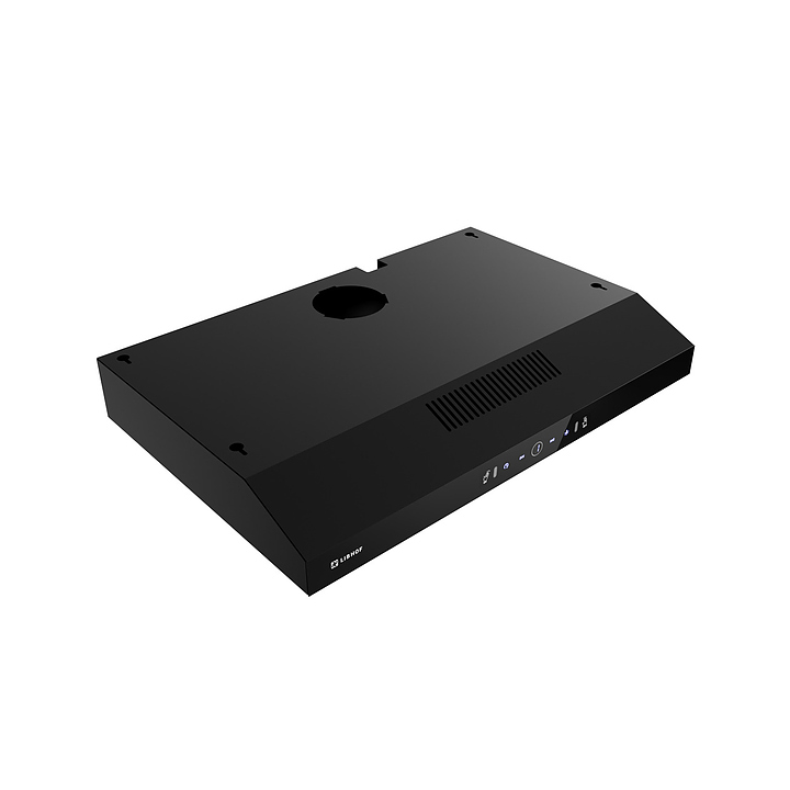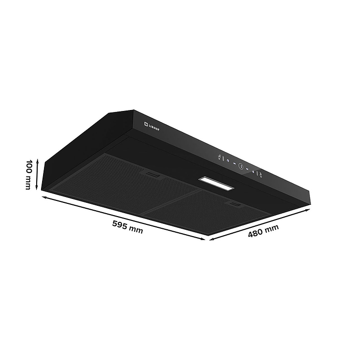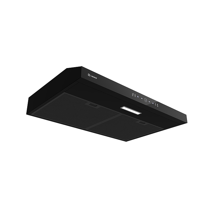 Подвесная кухонная вытяжка Libhof LF-3360 black предназначена для очистки воздуха от продуктов горения, копоти и запахов в процессе приготовления пищи путем принудительной вентиляции в домашних условиях. Модель оснащена двумя жироулавливающими фильтрами, вентилятором с электродвигателем, откидной крышкой, светодиодными светильниками, кабелем питания с вилкой, панелью управления с сенсорными клавишами и цифровым дисплеем индикации. Корпус выполнен из высококачественной стали с термостойким покрытием, жироулавливающий фильтр – из алюминия. В комплект поставки входят вытяжка в сборе, инструкция, комплект крепежа, обратный клапан. Особенности: