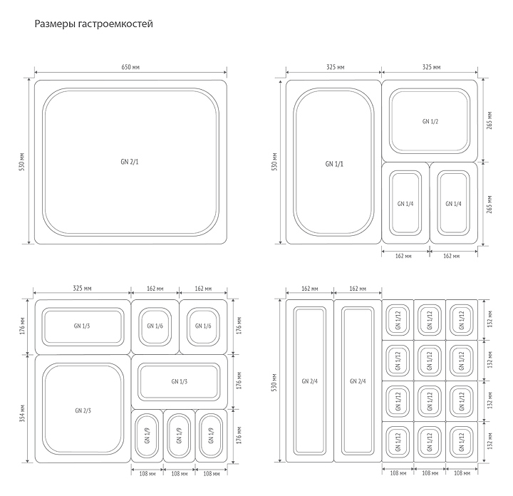 Гастроемкость Luxstahl GN 1/9-150 предназначена для демонстрации, заморозки, приготовления, транспортировки и хранения продуктов в пароконвектоматах, конвекционных печах, расстоечных шкафах, холодильных и морозильных шкафах, столах и другом оборудовании на предприятиях общественного питания и торговли. Модель оснащена закругленными углами для удобства выгрузки содержимого. Изделие выполнено из нержавеющей стали. Дополнительные характеристики: