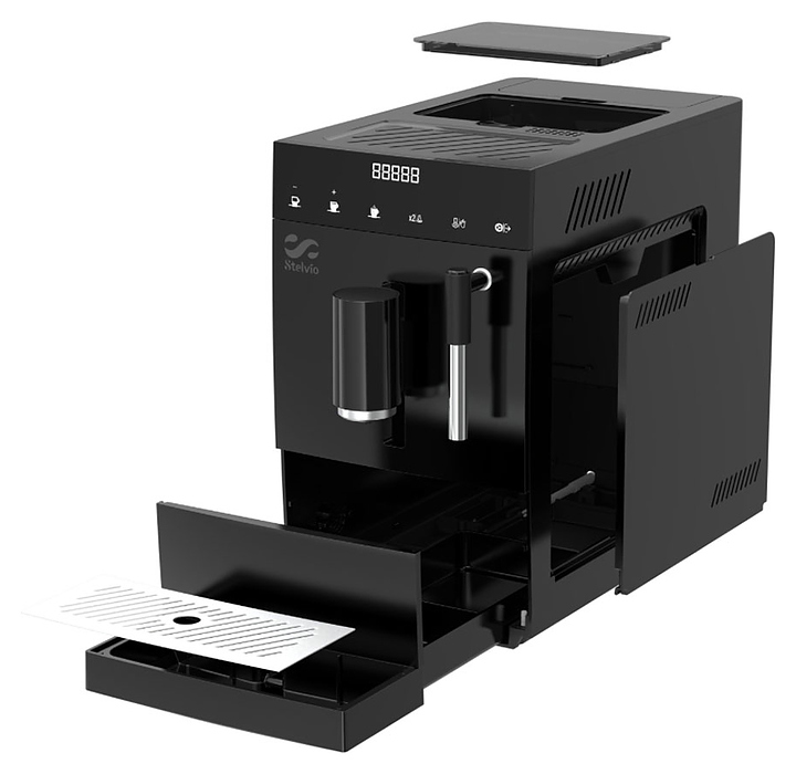 Кофемашина Stelvio AC100 используется в домашних условиях для приготовления кофе и напитков на его основе. Модель оснащена встроенной жерновой кофемолкой с 5 степенями помола, мощной итальянской помпой ARS, ручным капучинатором и сенсорным управлением с возможностью регулировки объема, температуры и крепости напитков. Автоматическая самоочистка и разборная конструкция облегчают уход. Фронтальная панель выполнена из стекла и пластика, корпус - из пластика, жернова - из нержавеющей стали. Особенности:
