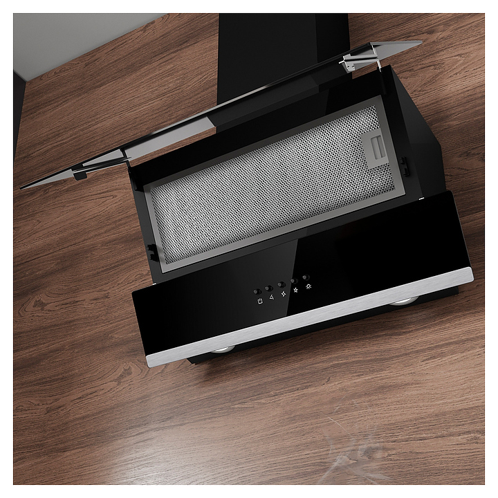 Наклонная кухонная вытяжка Libhof LV-4260 black-silver предназначена для очистки воздуха от продуктов горения, копоти и запахов в процессе приготовления пищи путем принудительной вентиляции в домашних условиях. Модель оснащена двумя жироулавливающими фильтрами, вентилятором с электродвигателем, откидной крышкой, светодиодными светильниками, кабелем питания с вилкой, панелью управления. Корпус выполнен из высококачественной стали с термостойким покрытием, жироулавливающий фильтр из алюминия. В комплект поставки входят вытяжка в сборе, инструкция, комплект крепежа, обратный клапан. Особенности: