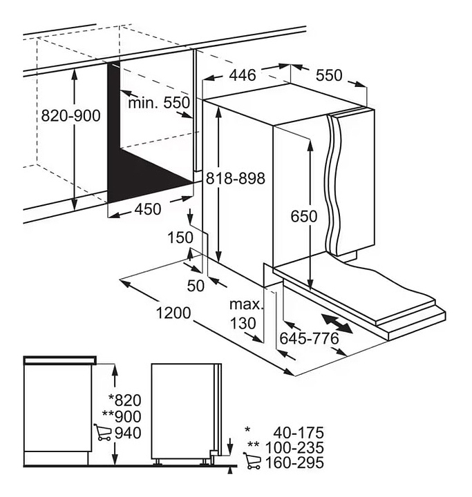 • Размеры ниши для встраивания: 818х450х550 мм