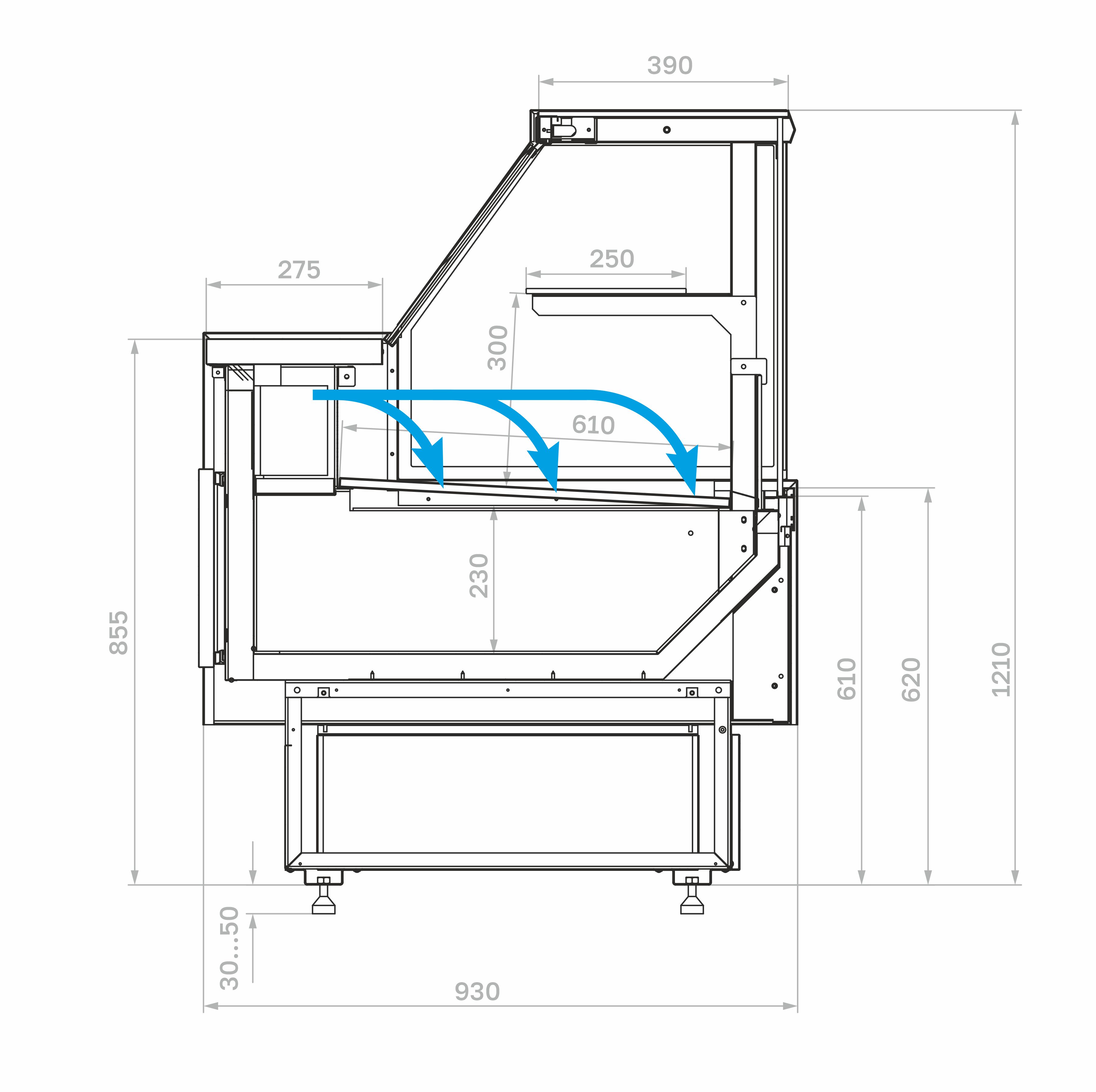 Витрина холодильная Carboma Palm 3 GC95 SV 1,25-1 версия 2.0 (9006-9005 с боковинами)