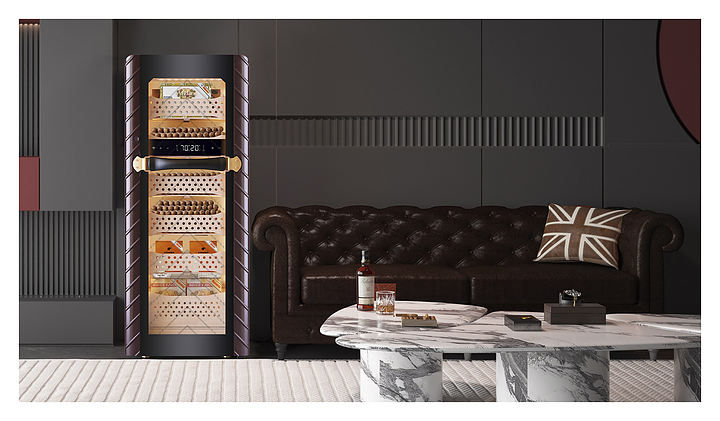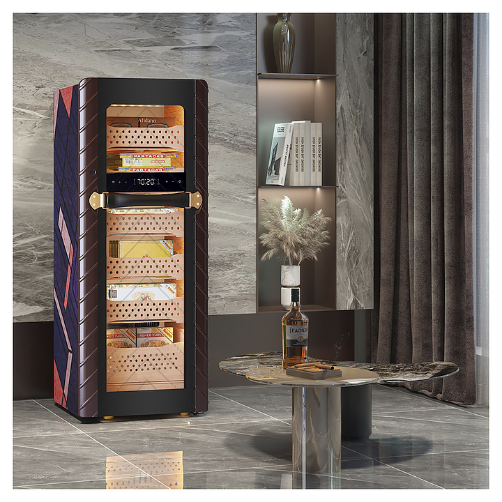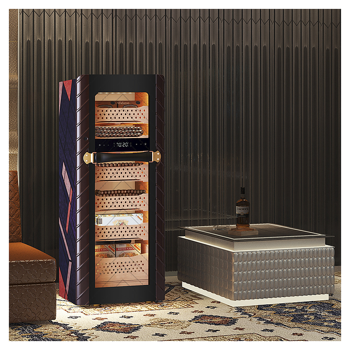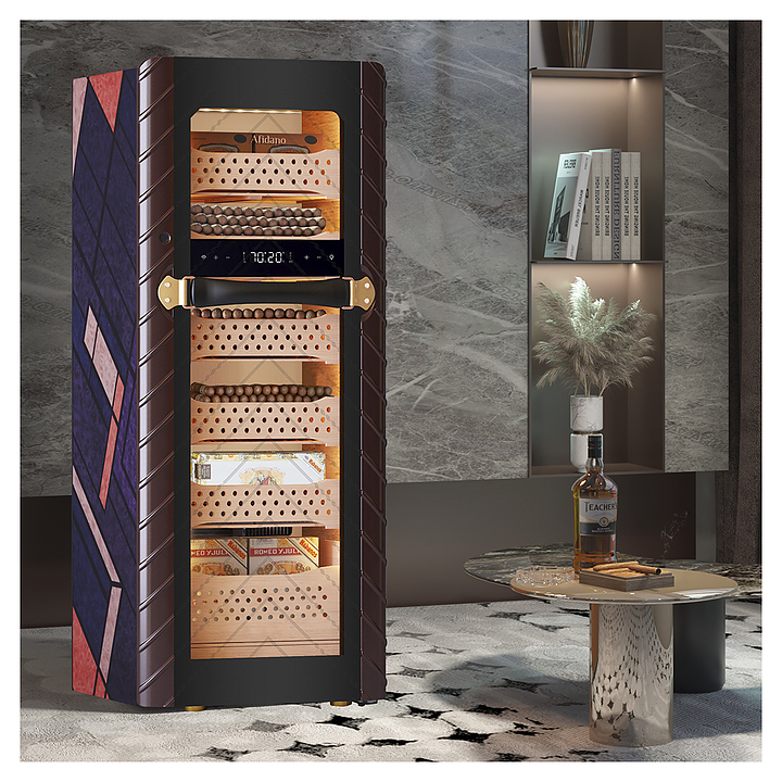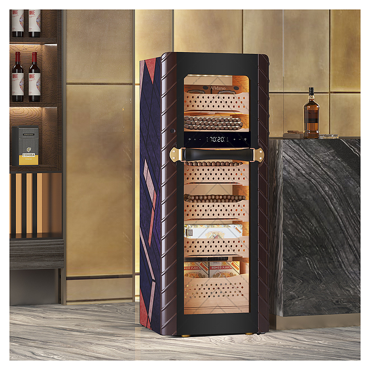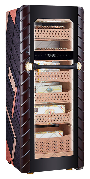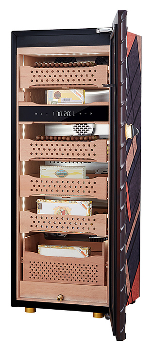 Шкаф Afidano C5 предназначен для хранения в оптимальных условиях и демонстрации сигар в специализированных магазинах, гостиницах, складских помещениях и домашних условиях. Модель оснащена 1 температурной зоной, встроенной сенсорной панелью управления, открытием отпечатком пальца, 5 выдвижными ящиками, электронным термостатом и регулируемыми ножками. Цифровой гигрометр и внутренняя подсветка упрощают мониторинг и обзор содержимого. Корпус выполнен из стали, обшитой скульптурным полотном, ручка - из стали, обшитой кожей, внутренняя отделка и ящики - из испанского кедра. Особенности: