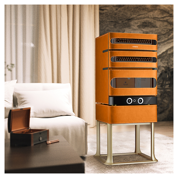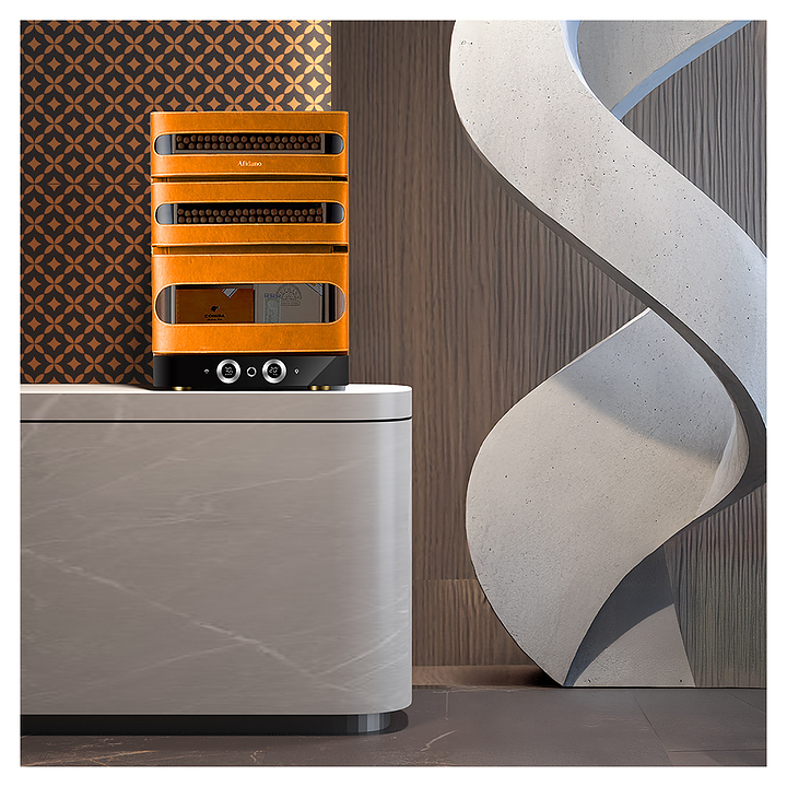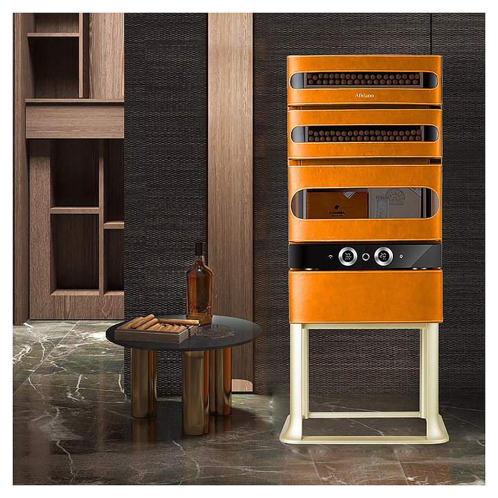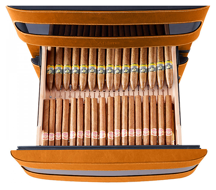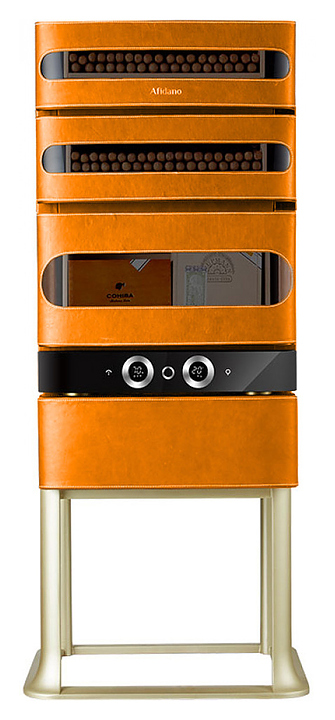 Шкаф Afidano L3 предназначен для хранения в оптимальных условиях и демонстрации сигар в специализированных магазинах, гостиницах, складских помещениях и домашних условиях. Модель оснащена 1 температурной зоной, 3 дверьми, открытием отпечатком пальца, сенсорной панелью управления, 3 выдвижными ящиками, утопленной ручкой, электронным термостатом и регулируемыми ножками. Цифровой гигрометр и внутренняя подсветка упрощают мониторинг и обзор содержимого. Корпус выполнен из стали, обшитой скульптурным полотном, внутренняя отделка и ящики - из испанского кедра. Особенности: